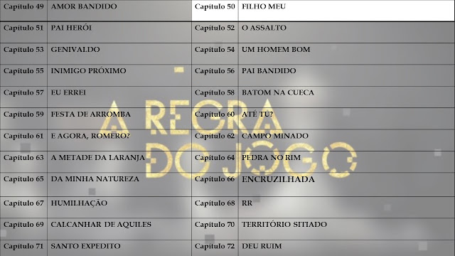 A Regra do Jogo entrou no horário das 21:10 no dia 31 de agosto de 2015 substituindo Babilônia e sendo substituída por Velho Chico.
